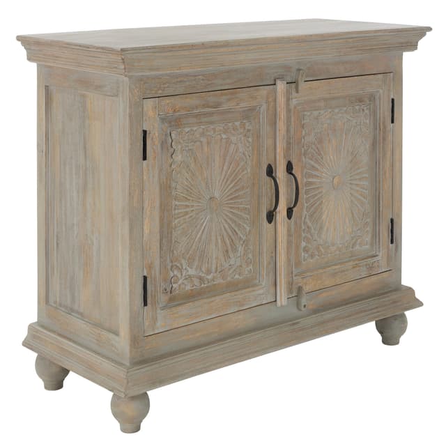 Kuvaus:Käsityönä valmistettu massiivisesta mangopuusta. Jokainen näistä lipastoista on ainutlaatuinen. Tämän vintage-komeron ovien silmiinpistävät kaiverrukset ovat todellinen katseenvangitsija.Tutustu ominaisuuksiin