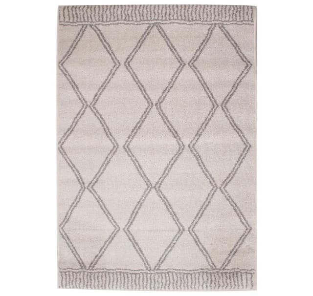Matto LOTTO-9, 200x285cm, vaaleanharmaa/valkoinen rommi. Laadukas egyptiläinen matto. Paalun korkeus 6 mm. Materiaali: 100% polypropeeni. Loimi: Polyesteri. Paino: 1300 g/m2