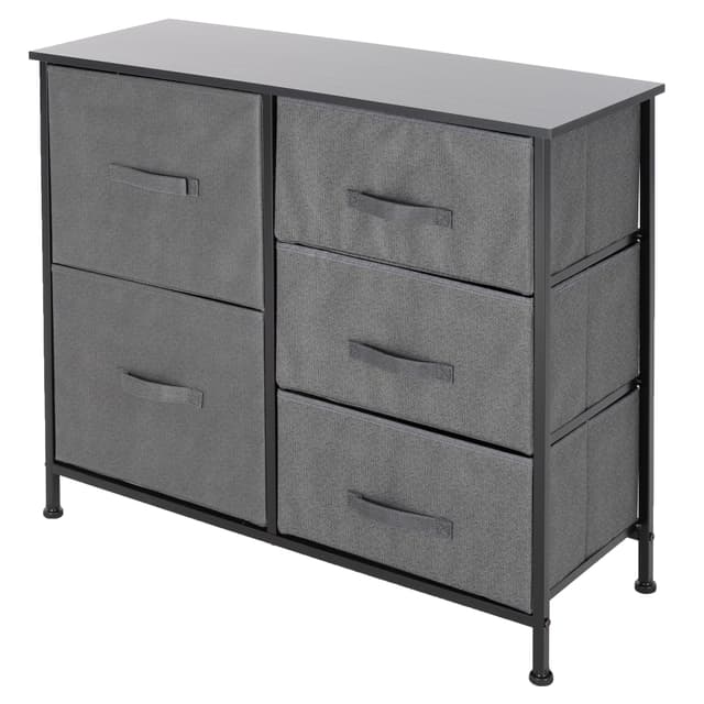Monimuotoisen tekstiili kaappi, 5 laatikkoa ML-Design® on tukeva teräsrunko kanssa MDF puun muotoilu ja sopii mainiosti olohuone, makuuhuone, lastenhuone tai käytävällä. Kautta tilaa säästävä muotoilu kaapin tarjoaa maksimaalisen tallennustilaa viemättä paljon tilaa.