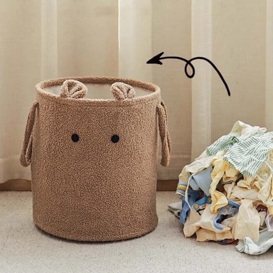 Söpö ja pehmeä: Lampaantaljasta valmistettu pyykkikori on paitsi käytännöllinen, myös erittäin söpö ja pehmeä. Sen eläinaiheinen muotoilu tuo iloa lastenhuoneeseen ja tekee pyykin keräämisestä hauskempaa. Pehmeä materiaali tuntuu miellyttävältä koskettaa ja tekee siitä turvallisen käyttää myös lasten leikeissä. Sen söpö ulkonäkö sopii täydellisesti lastenhuoneen sisustukseen ja tuo siihen leikkisyyttä. Käytä sitä lelujen, pehmolelujen tai vaatteiden säilyttämiseen. Sen pehmeä rakenne estää naarmuja ja kolhuja, mikä tekee siitä ihanteellisen valinnan lastenhuoneeseen. Lampaantalja pyykkikori on täydellinen yhdistelmä käytännöllisyyttä ja söpöyttä.