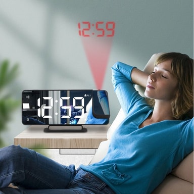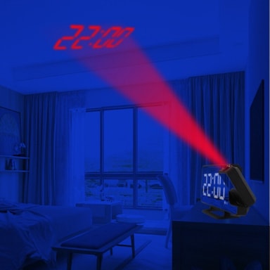 LED-herätyskello: Projektorikellossa on torkkutoiminto ja LED-näyttö, jonka kirkkautta voidaan säätää 6 eri tasolle.