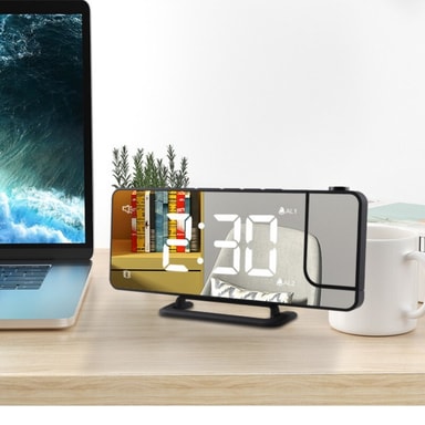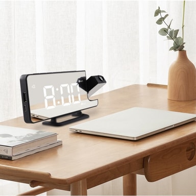 Kääntyvä projektori: Aika voidaan projisoida esimerkiksi makuuhuoneen kattoon. 180 asteen säädön ansiosta voit asettaa haluamaasi projektioon.