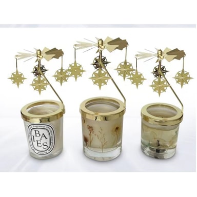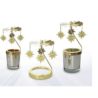 Koe lumoavaa lämpövoimaista pyörimistä tällä kultaisella pyörivällä kynttilänjalalla, jossa on 7,4 cm:n pohja. Luo romanttisen tunnelman luomalla kiehtovia varjoja. Ihanteellinen sisustus kodikkaisiin koteihin.Tutustu ominaisuuksiin