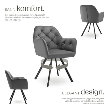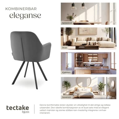 Pyörivä samettinen Lucia-käsinojatuoli tectakelta käytännöllisessä 2 kappaleen setissä ei ole vain yksinkertainen ruokapöydän tuoli, vaan todellinen katseenvangitsija kodissasi. Sen hienostuneen muotoilun ja korkealaatuisten materiaalien ansiosta se on kaikkialla ehdoton kohokohta.