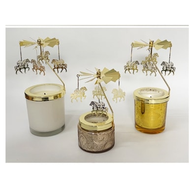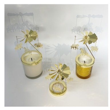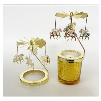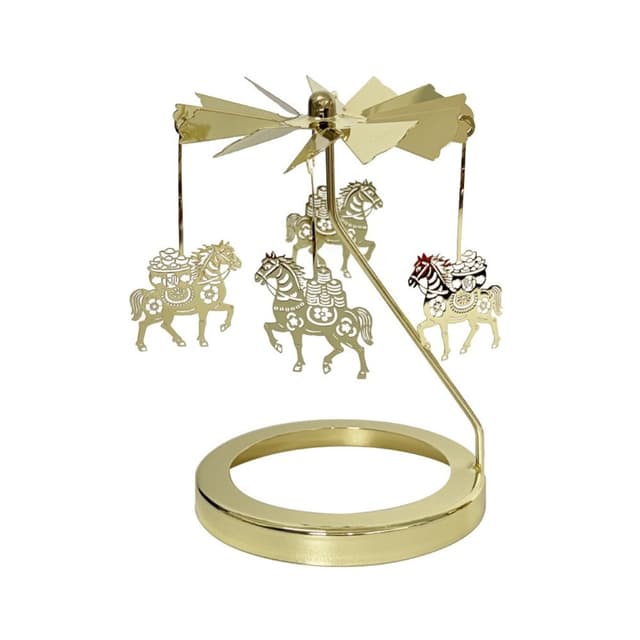 Romanttinen tunnelma: Luo romanttinen ja leikkisä tunnelma tällä kultaisella pyörivällä kynttilänjalalla. Hellävarainen pyöriminen ja välkkyvä kynttilänvalo yhdistyvät luoden monimutkaisia varjoja, muuttaen minkä tahansa tilan rauhallisuuden tyyssijaksi. Ihanteellinen tunnelman luomiseen intiimien illallisten, rentouttavien iltojen tai erityistilaisuuksien aikana, tämä karusellikynttilänjalka lisää ripauksen eleganssia ja charmia. Sen kultainen viimeistely heijastaa kynttilänvaloa, parantaen lämmintä ja kutsuvaa tunnelmaa, saaden jokaisen hetken tuntumaan hieman erityisemmältä. Korosta kotisi sisustusta tällä romanttisella lämpöpyörivällä kynttilänjalalla ja uppoudu sen kiehtovaan hehkuun.