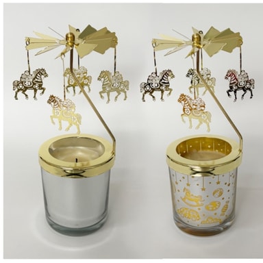 Lämmöllä toimiva pyöriminen: Koe pyörivän kynttilänjalan lumoava viehätys, joka saa voimansa yksinomaan sytytetyn teekynttilän lämmöstä. Tämä innovatiivinen muotoilu eliminoi paristojen tai ulkoisten virtalähteiden tarpeen, luoden lumoavan karuselliefektin lämmön noustessa, pyörittäen tuulettimen siipiä ja pyörien viehättäviä riippuvia koristeita. Täydellinen lisämään ripauksen taikaa kotisi sisustukseen, tämä lämmöllä toimiva kynttilänjalka on osoitus yksinkertaisista mutta kiehtovista suunnitteluperiaatteista, muuttaen minkä tahansa huoneen kodikkaaksi ja kutsuvaksi pyhäköksi. Nauti hellävaraisesta liikkeestä ja lämpimästä hehkusta, jonka vain tämä metallinen pyörivä teekynttilänjalka voi tarjota.