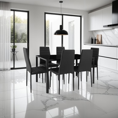 Nämä kauniit ja tyylikkäät ruokasalin tuolit parantavat visuaalisesti olohuoneen, keittiön, vastaanoton odotushuoneen tai bistron modernilla yksinkertaisuudellaan. Mutta ei vain sitä! Tuolit ovat kevyitä, pehmeitä, erittäin mukavia ja erittäin kestäviä. Ruokailutuolien kestävä synteettisestä nahasta valmistettu päällinen on miellyttävän tuntuinen ja helppo puhdistaa. Koska ruokailutuolit ovat melko kevyitä, niitä on helppo nostaa, mikä on ihanteellista säilytystä varten. Lattian suojaamiseksi ja melun välttämiseksi tuolien jalat on varustettu muovisilla suojuksilla, joten kalusteet eivät aiheuta vahinkoa, kun ne työnnetään esimerkiksi pöytien alle. Ruokailutuolien verhoilu on noin 3 cm paksu, joten voit tuoda lisämukavuutta kotiisi tai työpaikallesi. Jos etsit tyylikästä lisäystä olohuoneeseesi, älä etsi kauempaa kuin nämä tectaken ruokailutuolit.