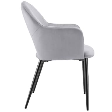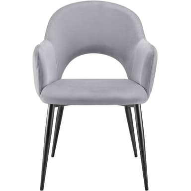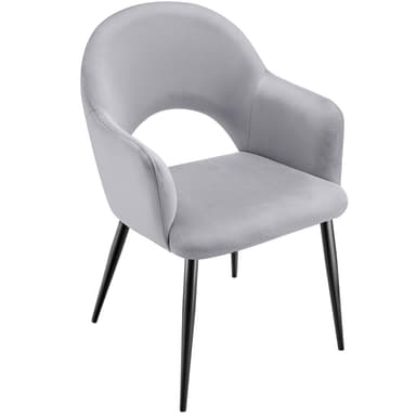 Ruokailutuolin istuinkupit vakuuttavat tyylikkäällä yhdistelmällä pehmustettuja käsinojia ja kevyesti kaarevaa selkänojaa. Yhdistelmä silkinpehmeän samettiverhoilun kanssa antaa tuoleille paitsi erityisen eleganssin, myös erittäin miellyttävän istumiskokemuksen. Lisämukavuutta tarjoaa mukava pehmuste, jossa on korkeatiheyksinen vaahtomuovitäyte, joka kutsuu pitkiin, viihtyisiin hetkiin ruokapöydän ääressä.