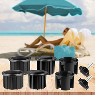 Universaali yhteensopivuus: Suunniteltu sopimaan useimpiin tavallisiin sateenvarjon reikiin, lisävarusteemme sopivat käytettäväksi useiden ulkopöytien kanssa, mukaan lukien puutarhapöytien, patiosarjan ja piknikpöytien kanssa. Varmista täydellinen istuvuus ja helppo asennus monipuolisella sarjallamme.