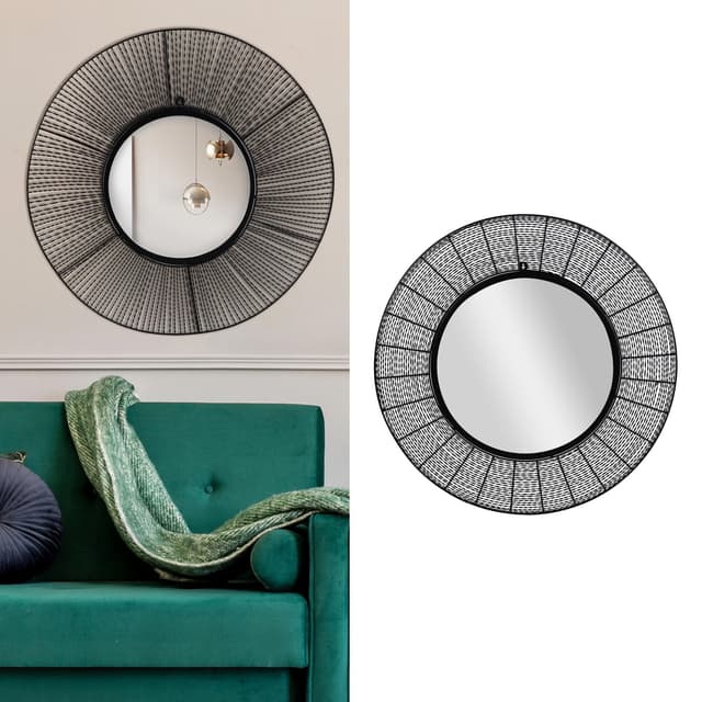 Pystysuorat jalat yhdistävät sisäpeilin ja ulomman metallirenkaan toisiinsa ja luovat kauniin pyöreän muodon. Seinäpeili on erittäin kestävä ja vakaa. Ajattoman ulkonäkönsä ansiosta pyöreä peili sopii monenlaisiin sisustustyyleihin, ja se voidaan yhdistää hyvin olemassa olevaan seinäkoristeeseen.
