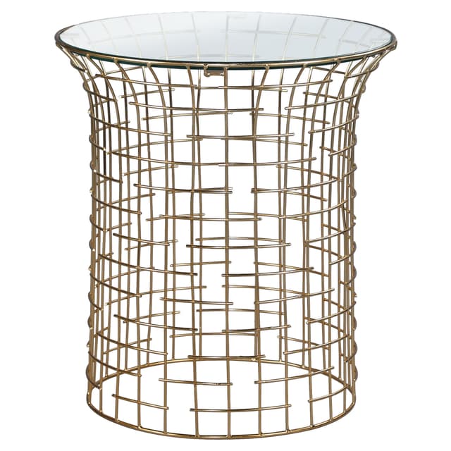 Kaunis sivupöytä kultaisessa strutsi-ilmeessä. Pöydän runko on valmistettu galvanoidusta raudasta, jonka väri on kultainen. Tämän ansiosta se on erittäin vakaa ja korostaa huoneen värimaailmaa.
