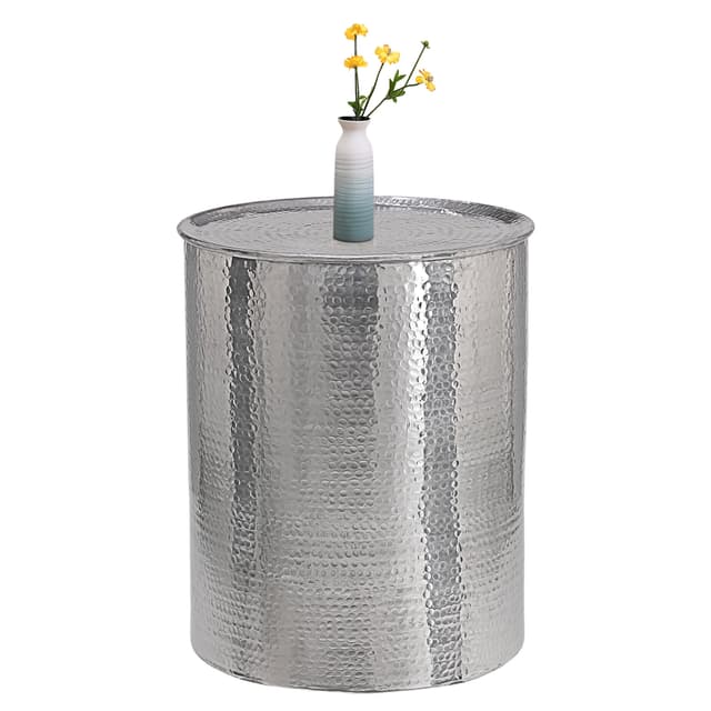 Haluaisitko uuden design-sivupöydän? Sivupöytä on valmistettu korkealaatuisesta alumiinista, ja se on suhteellisen kevyt mutta erittäin kestävä. Se sopii hyvin juomien, kirjojen tai kaukosäätimen sijoittamiseen sen päälle. Voit käyttää sivupöytää myös koristeellisena pöytänä kukille tai muille tarvikkeille. WOMO-DESIGNin laadukasta sivupöytää on vaikea voittaa ainutlaatuisuudessaan. Ei vain siksi, että jokainen kappale on ainutlaatuinen ja käsityönä valmistettu. Vasaroitu ulkonäkö on upea tyyli, ja se on ehdoton katseenvangitsija olohuoneessasi. Kaunis hopea harmailla elementeillä näyttää erittäin tyylikkäältä, ja se voidaan helposti yhdistää sisustustyyliisi.