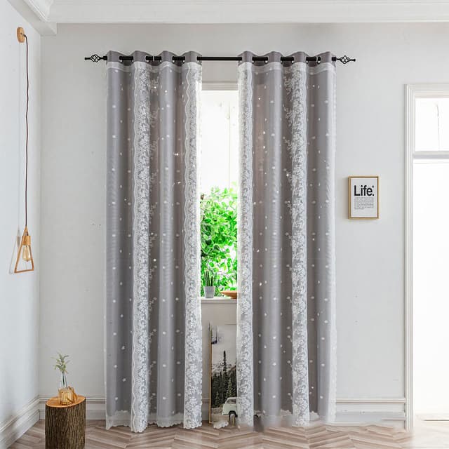 Gardinerna är gjorda av polyester och spetsmaterial, som har utmärkt skuggningsprestanda, ger rummet mörkare och avskildhet, vilket effektivt kan blockera ljuset och skapa en bekvämare inomhusmiljö.Tutustu ominaisuuksiin