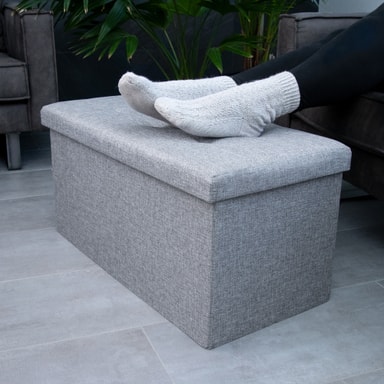 SUUNNITTELU: Tämän käytännöllisen kokoontaitettavan laatikon/jakkaran ulkopuolelta on moderni ja yksilöllinen pellavakankainen muotoilu ja pehmeä kangas sisäpuolella, joten se näyttää erittäin tyylikkäältä ja on taatusti katseenvangitsija!