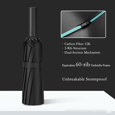 Vahva tuulenpitävyys: Tämä täysautomaattinen sateenvarjo on suunniteltu kestämään kovaakin tuulta ja myrskyjä. Sen 60 ripaa (12 ripaa x 5 luuta) jakavat tuulen voiman tasaisesti, mikä estää sateenvarjoa kääntymästä ympäri tai rikkoutumasta. Tämä tekee siitä ihanteellisen valinnan Suomen vaihteleviin sääolosuhteisiin, joissa tuuli voi yllättää. Sen vahva rakenne takaa, että pysyt kuivana ja suojattuna, vaikka sää olisi kuinka haastava. Sateenvarjo on valmistettu laadukkaista materiaaleista, jotka kestävät pitkäaikaista käyttöä ja säilyttävät muotonsa.