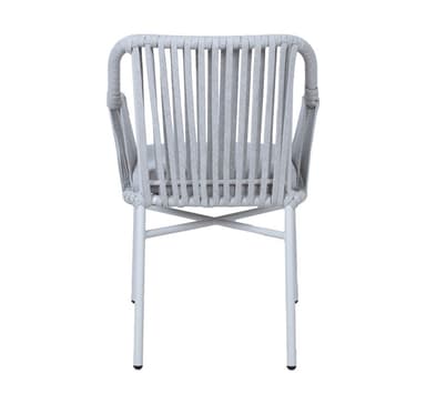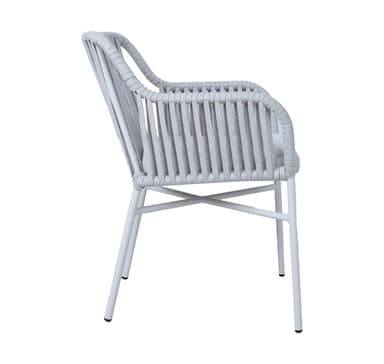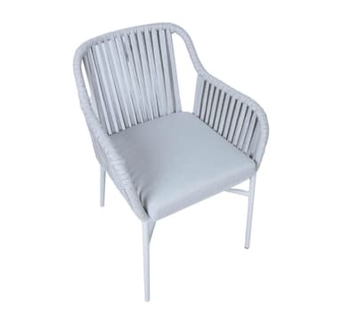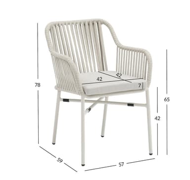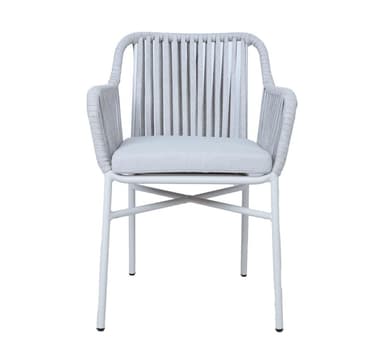Tuoli MELROSE beige. Tuolin runko on valmistettu alumiinista ja viimeistelty harmaalla pulverimaalilla. Tuolin selkänoja ja käsinojat on päällystetty narupunokalla. Tyyny sisältyy hintaan. Tyynynpäällinen on valmistettu polyesterikankaasta.Tutustu ominaisuuksiin