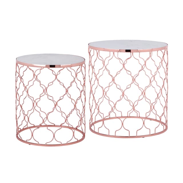 Jokainen kappale on ainutlaatuinen! Tämä ylivoimainen WOMO-DESIGN®-Phoenix-alusta on ainutlaatuinen tyylinsä ansiosta todellinen katseenvangitsija jokaisessa huoneessa. Pöytälevyt, jotka on valmistettu valkoisesta Banswara-marmorista hienolla yksilöllisellä marmoroitumisellaan, sulautuvat täydellisesti kuparin metallikehysten filigraaniseen ulkonäköön.
