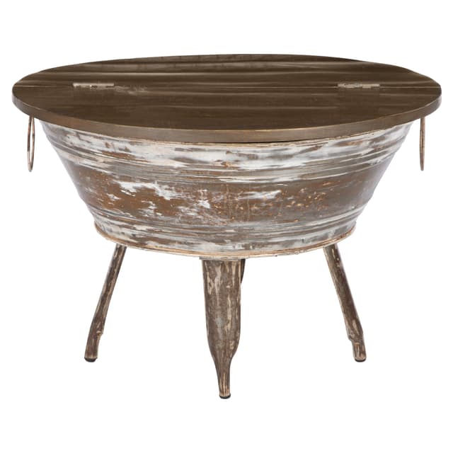 Jokainen pala on ainutlaatuinen! Pyöreän sohvapöytä jonka WOMO-DESIGN® on resuinen chic ulkoasua syöttää huoneita uuden ilmeen. Käsintehty ruskea värillinen Mango Wood paneeli koottu karkea-sahattu lankkuja, syttyy ruosteinen valkoinen elin washtub näyttää parhaansa etu. Erityinen yksityiskohta ovat lisäpitoa renkaat ja lisää tallennustilaa pohjassa pöydän, joka on ansiosta kokoontaitettava pöytälevy helppo pääsy. Joten koko ulkoasua sohvapöytä jälleen korostettuna.