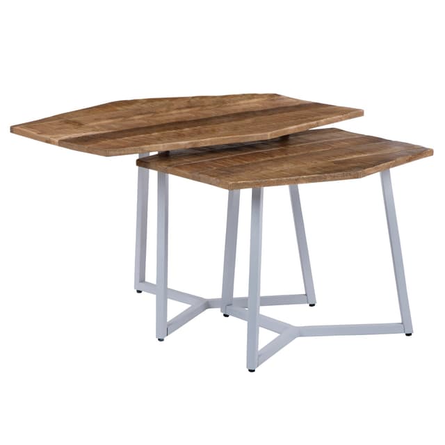Jokainen pala on ainutlaatuinen! Moderni ja ylellinen taulukko joukko WOMO-DESIGN® on todellinen helmi ja oikea valinta suunnittelussa oleskelutilaa. Yhdistelmä 6-kulma, karkea leikkaus top kiinteässä mango puu ja jauhe-päällystetty metallirunko antaa kodin yksilöllisen ilmeen. Taulukoissa kahta eri kokoa voidaan käyttää yksinään tai voidaan sijoittaa yhteen ja joukko luovan inspiraation.