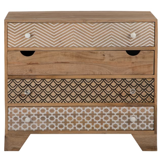 Pukeutuja on boho tyyliin esittelee aito tunne. Niiden ainutlaatuinen ilme rintamilla kuvio print luonnon kovapuusta on todellinen kohokohta kodin ja tarjoaa myös runsaasti säilytystilaa.
