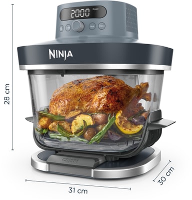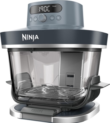 Ninja Crispi Pro -kiertoilmakypsentimessä on 5,7 l ja 2,3 l astiat. Toiminnot kuten ilmafriteeraus, paisto, paahto ja uudelleenrapeutus sekä PFAS-vapaa, kuumuutta kestävä lasi mahdollistavat ruoan valmistamisen, tarjoilun, säilytyksen ja uudelleenlämmityksen samassa astiassa.
