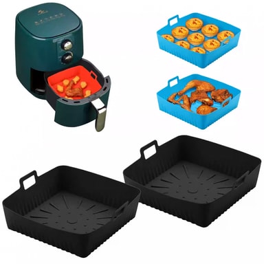 Suojaa Airfryeriäsi: Kun laitat ruoan säiliöön, vältyt tahmeiden ja palaneiden jäännösten muodostumiselta Airfryeriin. Käytännöllinen muotoilu korkealla reunalla. Helpottaa myös ruoan ottamista ilmakeittimeen ja sieltä pois. Sopii myös käytettäväksi mikroaaltouunissa.