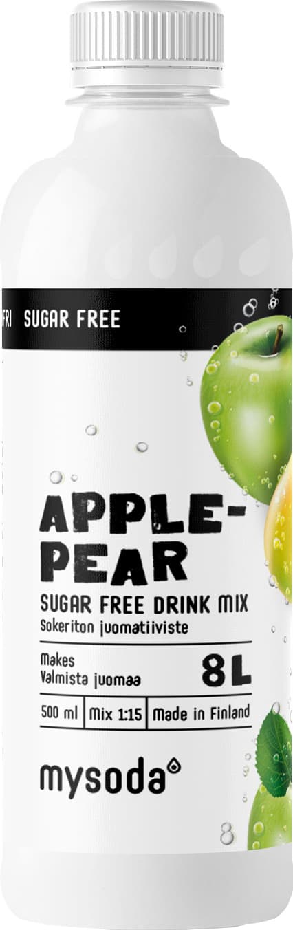 Mysoda Sugar Free Apple & Pear -juomatiivisteellä voit nauttia raikkaasta sokerittoman omenan ja päärynän mausta. 500 ml pullolla voit valmistaa jopa 8 litraa suosikkijuomaasi.