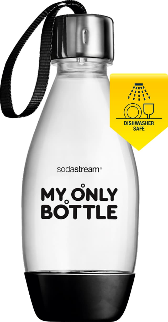 Vähennä muovipullojen käyttöä SodaStream My Only Bottle -pullon avulla. BPA-vapaa pullo ei aiheuta haittoja terveydelle ja se voidaan pestä kätevästi pesukoneessa. Metallikorkissa on käytännöllinen hihna, jonka ansiosta pulloa on helppo kantaa mukana.