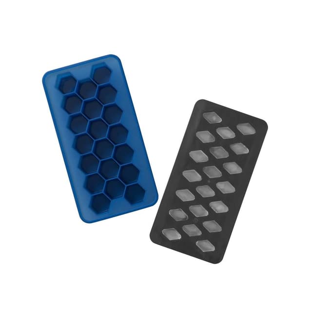 Tämä jääpalatarjotin tekee 3 erilaista jäämuotoa, jotta voit mukauttaa cocktaileihin sopivaksi. Silikonilokerosta saadaan suuria kuusikulmaisia kappaleita ja muoviosastosta keskikokoisia timantteja. Laita kaksi lokeroa yhteen pieniä kolmiomaisia jääpaloja varten.
