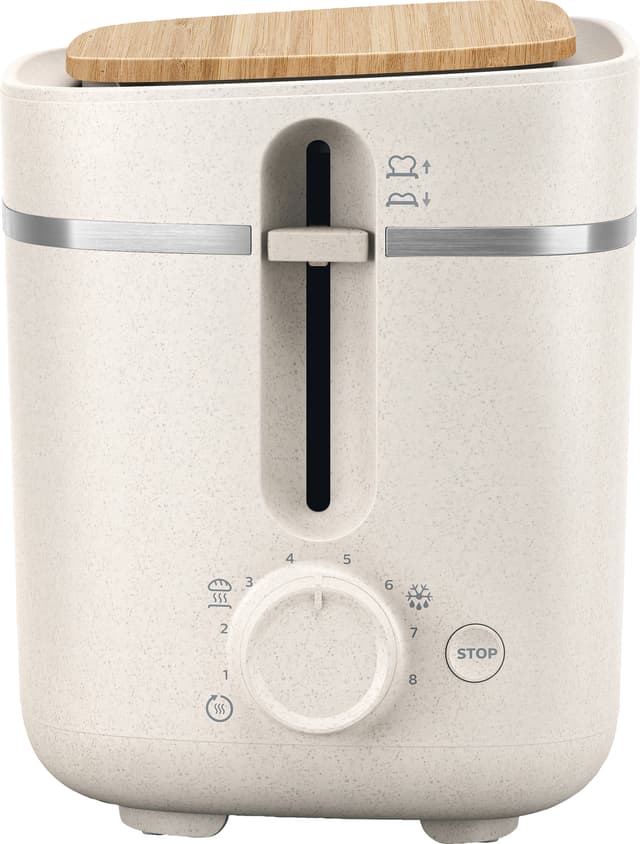 Philips Eco Conscious Edition -leivänpaahtimessa on kahdeksan paahtotasoa, kätevä sämpylälämmitin sekä sulatustoiminto. Leivänpaahtimessa on tilaa kahdelle leipäviipaleelle.