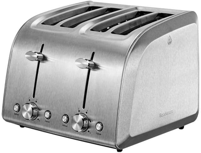 Sandstrøm S04TSS14E leivänpaahdin neljälle leipäviipaleelle. Leveisiin aukkoihin mahtuu paksummatkin leipäviipaleet. Irrotettava murutarjotin helpottaa leivänpaahtimen puhdistusta.