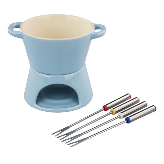 Kasta hedelmät ja vaahtokarkit kuumaan suklaaseen, jotta illallisen päätös olisi yksinkertainen ja täydellinen. Mukana neljä värikoodattua haarukkaa ruostumatonta terästä. Helppo koota ja purkaa. Helppo puhdistaa ja varastoida. Lämmitetään yhdellä lämpökynttilällä.