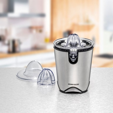 Silen i rostfritt stål är avtagbar och kan rengöras i diskmaskinen tillsammans med presskoner, juiceuppsamlare och dammskydd. Färskpressad juice bör inte saknas på något frukostbord.