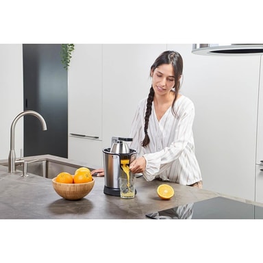 Easy Press 300W on täydellinen sähkösitruspuristin mehun valmistamiseen kaikenlaisista sitrushedelmistä vaivattomasti. Sisältää kaksi erilaista kartiota, jotka mukautuvat minkä tahansa appelsiinin, sitruunan, limetin tai greipin kokoon. Käytännöllinen sitruspuristin, kaikki osat ovat täysin irrotettavia ja konepestäviä.