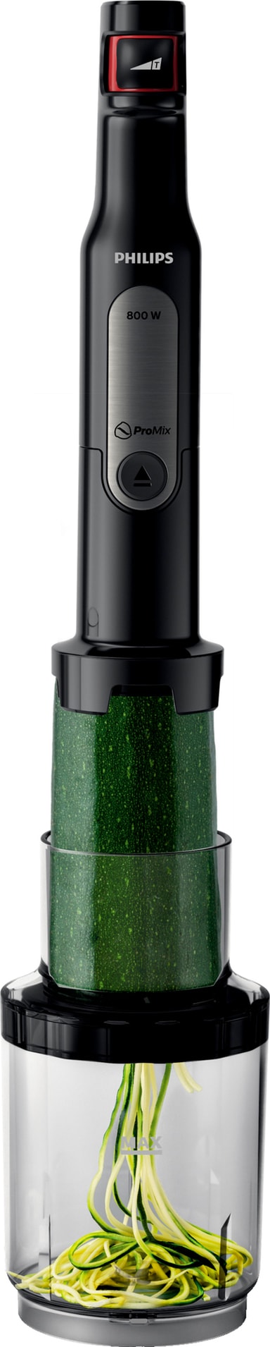 ProMix-teknologia: Sekoitinosan kolmiomainen muoto yhdistettynä terien leikkauskulmaan takaa nopeamman ja tasaisemman sekoituksen ainesosista riippumatta.