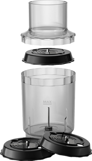 Kätevät lisävarusteet: Sekoitusosan lisäksi laitteen mukana toimitetaan vispiläosa kananmunien vatkaamiseen ja kakkutaikinan sekoittamiseen sekä kolmella raastinlevyllä varustettu spiralizer-osa. Pilkontakulho sopii puolestaan esimerkiksi pähkinöille ja lihalle.
