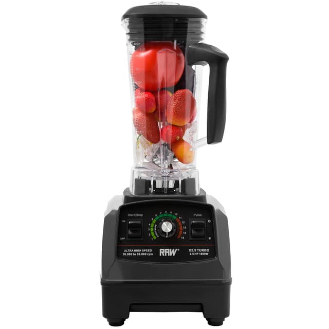 RAW X2,5 SS Turbo -tehosekoittimessa on 1800 watin moottori, 6 terävää terää ja 2 litran Tritan-kulho. Murskaa helposti jopa pähkinöitä tai jäätä ja valmista terveellisiä smoothieita tuoreista hedelmistä ja kasviksista.