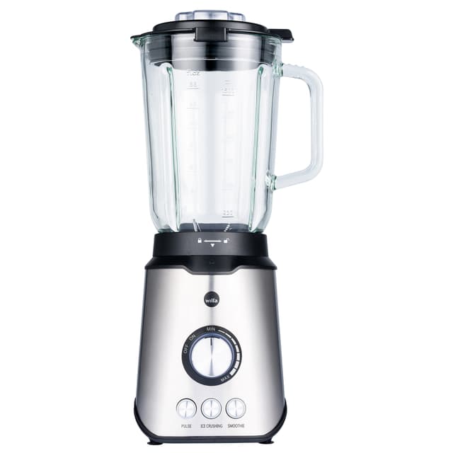 Wilfa BL-1000S -tehosekoittimessa on 1000 watin moottori, kolme toimintoa, säädettävä nopeus ja kätevä pulssitoiminto. Valmista herkullisia smoothie-juomia, soseita tai jälkiruokia 1,5 litran lasikannussa.