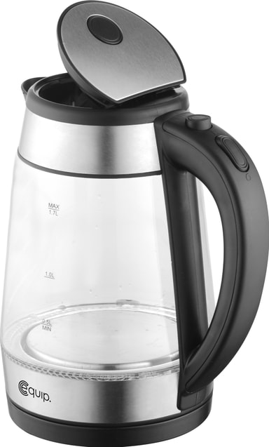 Equip-vedenkeitin on suunniteltu päivittäiseen käyttöön ja tehty lämmönkestävästä lasista. se tarjoaa nopean veden kiehumisen, LED-valaistuksen, automaattisen sammutuksen, kiehumis- ja kuivakäyntisuojan sekä 360° kääntyvän jalustan.Tutustu ominaisuuksiin