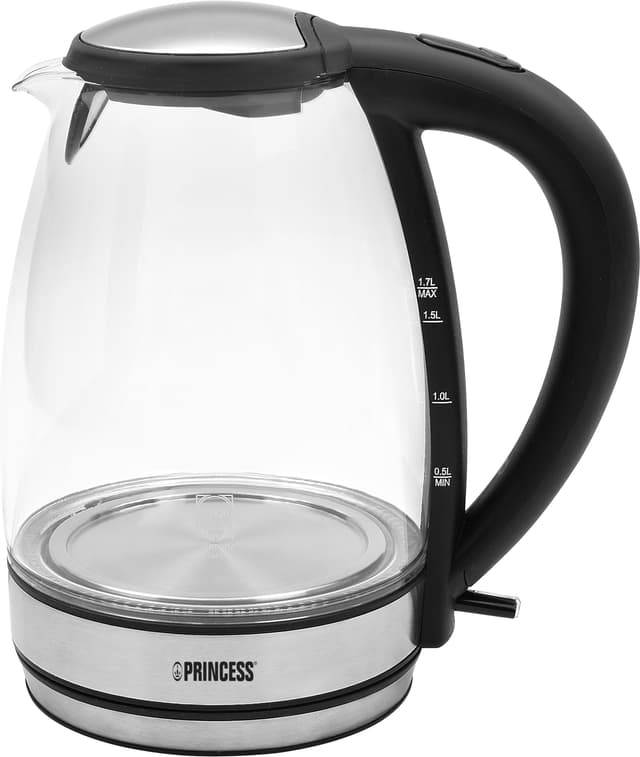 Lasinen Princess-vedenkeitin luo tunnelmaa keittiöösi. Laadukkaaseen lasiseen vesisäiliöön mahtuu jopa 1,7 litraa vettä. Veden määrän osoittimella voit mitata tarvitsemasi määrän, säästäen keittoaikaa ja sähköä.