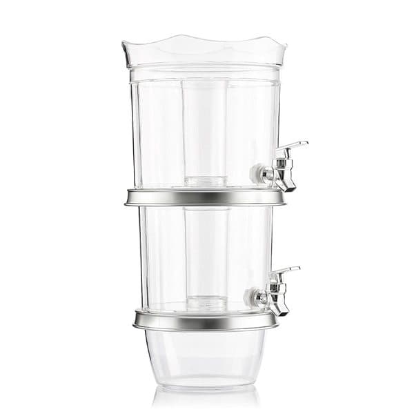 Täydellinen juoma-annostelija kahdessa kerroksessa. Siinä on 2 erillistä säiliötä 2 eri juomalle, sekä 2 hanaa. Keskellä oleva jääsäiliö pitää juomat kylminä laimentamatta niitä. Kantta voidaan käyttää tarjottimena pikkupurtavalle. Lisäksi annostelijan alaosassa on itsenäinen jääsäiliö. Se on erittäin helppo koota ja purkaa, mikä tarjoaa helpon puhdistuksen ja kätevän varastoinnin.