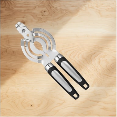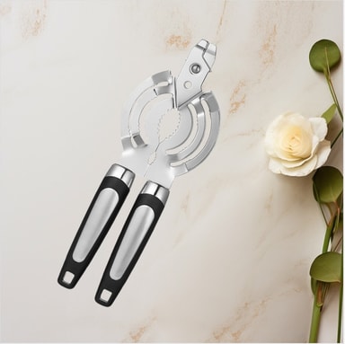 Multifunktionell design: Mer än bara en konservöppnare, detta mångsidiga verktyg fungerar även som en flasköppnare och burköppnare. Den integrerade flasköppnaren gör att du enkelt kan öppna dina favoritdrycker, medan burköppnaren ger extra hävstång för att öppna envisa burklock. Denna multifunktionella design gör den till ett värdefullt tillskott till alla kök.