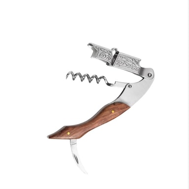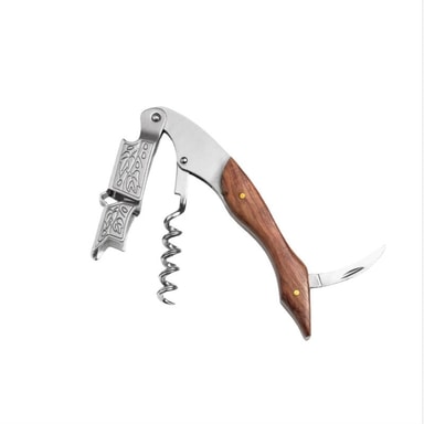 Tyylikäs muotoilu: Viinipullonavaajassa on tyylikäs ja elegantti muotoilu, jossa yhdistyvät hopeanvärinen ruostumaton teräs ja viiniköynnöksen lehtiruusupuu -kahva. Tämä yhdistelmä tekee siitä paitsi käytännöllisen työkalun, myös kauniin lisän keittiöösi tai baariisi. Ruusupuu -kahva tarjoaa mukavan ja tukevan otteen, kun taas ruostumaton teräs takaa kestävyyden ja pitkän käyttöiän. Sen tyylikäs ulkonäkö tekee siitä myös erinomaisen lahjan viinin ystäville tai kenelle tahansa, joka arvostaa laadukkaita ja kauniita keittiövälineitä. Se on täydellinen lahja syntymäpäiville, joululle tai mihin tahansa erityiseen tilaisuuteen.