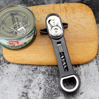 Monipuolinen keittiötyökalu: Säilykkeiden avaamisen lisäksi tämä työkalu toimii myös pullonavaajana, mikä tekee siitä käytännöllisen lisäyksen keittiölaatikkoon. Sen kompakti muotoilu sopii sekä tavallisiin pullonkorkkeihin että säilyketölkkien kansiin, joten erillisten työkalujen tarve poistuu.