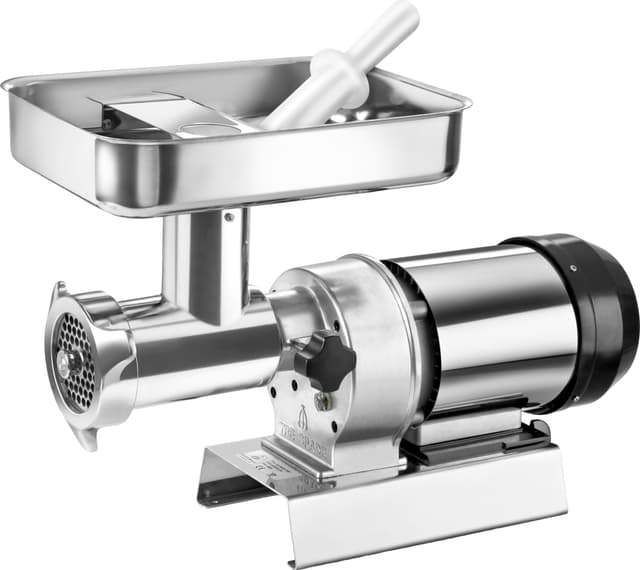 Sähkökäyttöinen Trespade-lihamylly kykenee prosessoimaan jopa 320 kg lihaa tunnissa. Voit purkaa laitteen rungon helposti käsipyörän avulla, ja puhdistaa siten kaikki osat perusteellisesti. Teräslevy ja terä ovat itseteroittuvia, ja näin ollen laitteen suorituskyky pysyy korkeana.