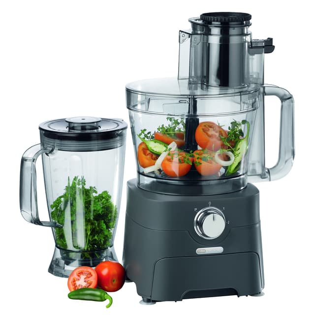 Tehokas ja kompakti monitoimikone, jossa on 2 nopeutta ja pitoasento. Mukana muovinen sekoituskulho, 1,8 litran tehosekoittimen kulho, veitsi ruostumattomasta teräksestä sekä muoviterä taikinan alustukseen. Kätevä säilytyslaatikko terille laitteen sisässä.