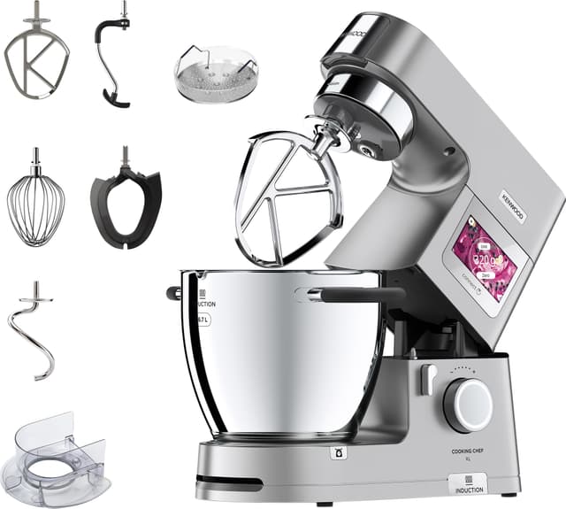 Kenwood Cooking Chef XL -yleiskoneessa on 1500 W moottori, 20°C ja 180°C välille säädettävä induktiokuumennustoiminto sekä intuitiivinen kosketusnäyttö. Kenwood World -mobiilisovellus tarjoaa runsaasti inspiraatiota ruoanlaittoon reseptien muodossa.