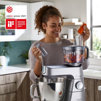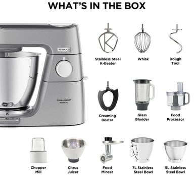 Ryhdy keittiöammattilaiseksi Kenwood Titanium Chef Baker XL -yleiskoneella. Laite sisältää integroidut EasyWeight-vaa’at, 7 ja 5 litran DuoBowl-kulhot, tehokkaan 1200 W moottorin helpon ja mukavan leipomisen takaamiseksi ja useita käteviä lisäosia.Tutustu ominaisuuksiin