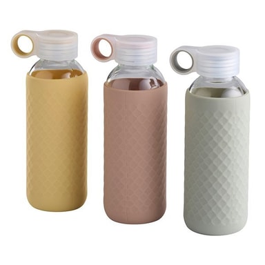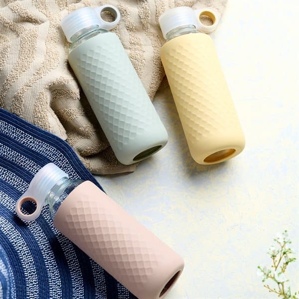 Kestävä lasipullo, jossa on liukumaton silikoniholkki