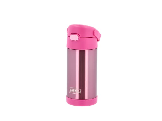 Thermos 355 ml Funtainer Hydration drikkeflaske i rustfrit stål og låg med pop-up sugerør. Flasken er kun velegnet til kolde drikke. Håndopvaskes, også inden brug første gang.Tutustu ominaisuuksiin